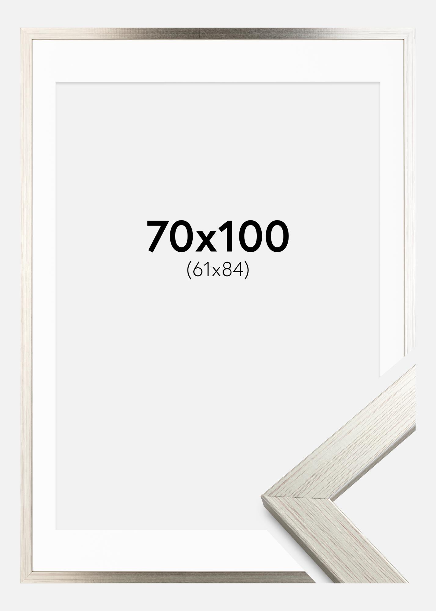 Rahmen Silver Wood 70x100 cm - Passepartout Weiß 62x85 cm
