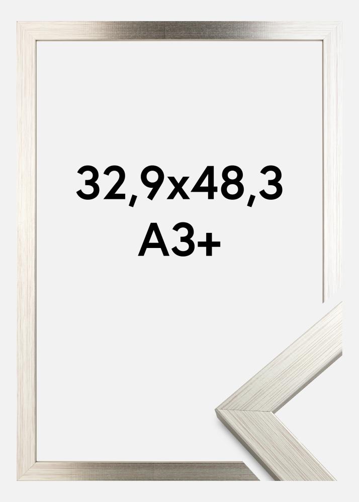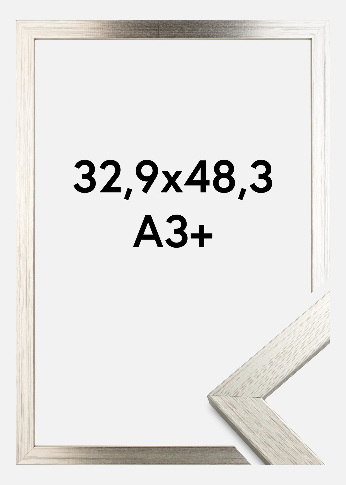 Geben Sie Ihren Lieblingsbildern die Aufmerksamkeit, die sie verdienen, mit diesem eleganten versilberten Rahmen. Mit einer Größe von 32,9x48,3 cm ist er perfekt für das A3+-Format geeignet und wird zu einem stilvollen Blickfang an Ihrer Wand. Dieser silberne Rahmen ist nicht nur ein optisches Highlight, sondern auch praktisch mit seinem kristallklaren und splitterfreien Acrylglas, das Ihr Kunstwerk oder Foto schützt.
