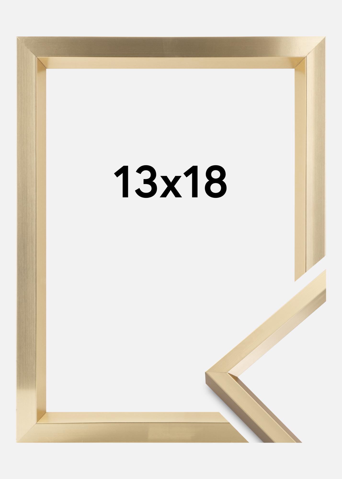 Verleihen Sie Ihren Lieblingsbildern die Aufmerksamkeit, die sie verdienen, mit diesem eleganten 13x18 cm Bilderrahmen in Gold. Mit seinem klassischen Design und dem glänzenden Goldton wird er zum Blickfang in jedem Raum. Die Breite des Rahmenprofils beträgt 15,2 mm und verleiht dem Motiv eine markante Kante, ohne es zu überwältigen.