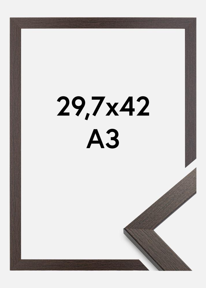 Geben Sie Ihren Wänden eine elegante Note mit diesem dunkelbraunen Bilderrahmen in der Größe 29,7x42 cm. Das schlichte Design mit einer 20 mm breiten Rahmenleiste ergänzt alle Arten von Kunstwerken oder Fotografien und verleiht Ihrem Zuhause oder Büro eine anspruchsvolle Atmosphäre.