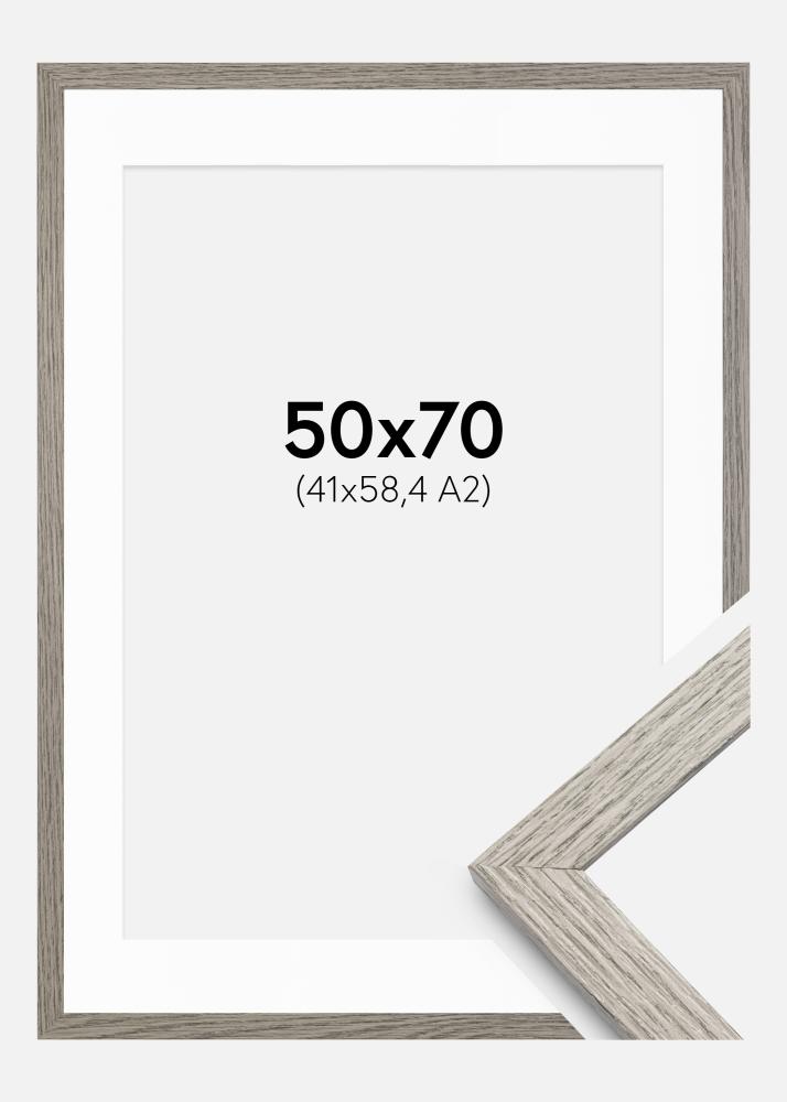 Rahmen Stilren grau Eiche 50x70 cm - Passepartout Weiß 42x59,4 cm