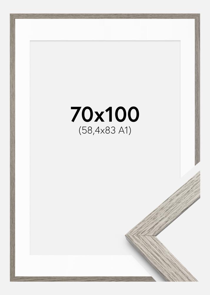 Ein eleganter grauer Rahmen mit Passepartout kann jeden Raum verwandeln, indem er Ihren Bildern einen stilvollen Rahmen verleiht. Dieser Rahmen, mit seinen Außenmaßen von 72x102 cm, ist perfekt, um Kunstwerke oder Fotografien in der Größe 59,4x84 cm (A1) hervorzuheben. Die matte Oberfläche und die subtile graue Farbe verleihen eine moderne und raffinierte Ausstrahlung, die zu den meisten Einrichtungsstilen passt.