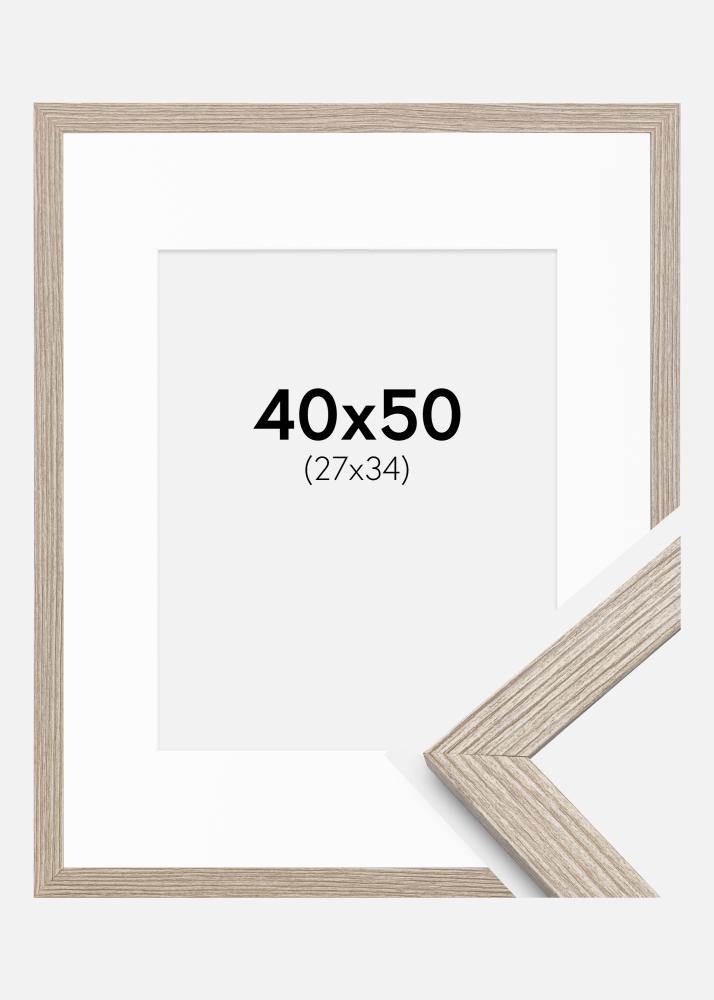Rahmen Stilren Greige Eiche 40x50 cm - Passepartout Weiß 28x35 cm