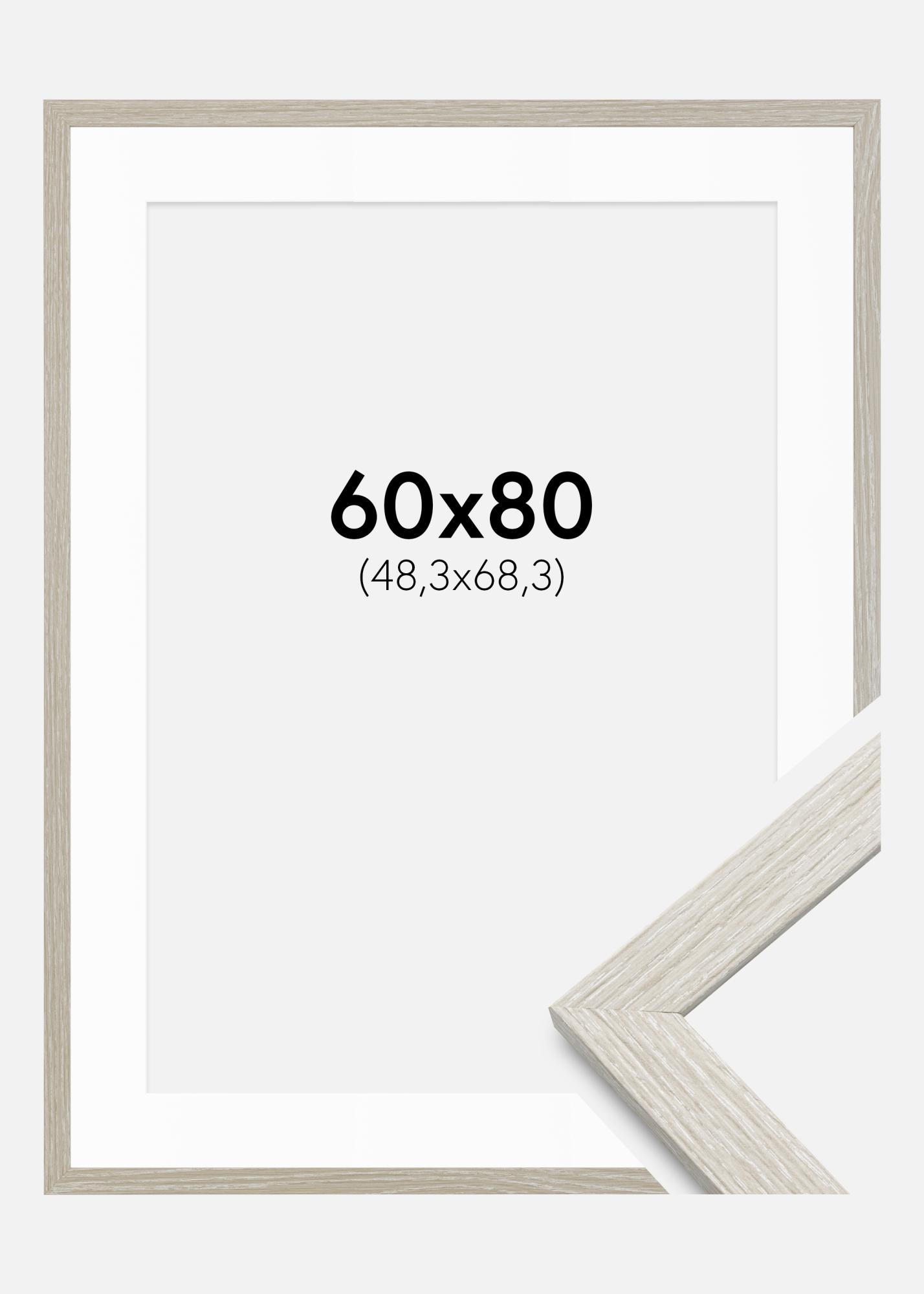 Rahmen Stilren Hellgrau Eiche 60x80 cm - Passepartout Weiß 49,3x69,3 cm