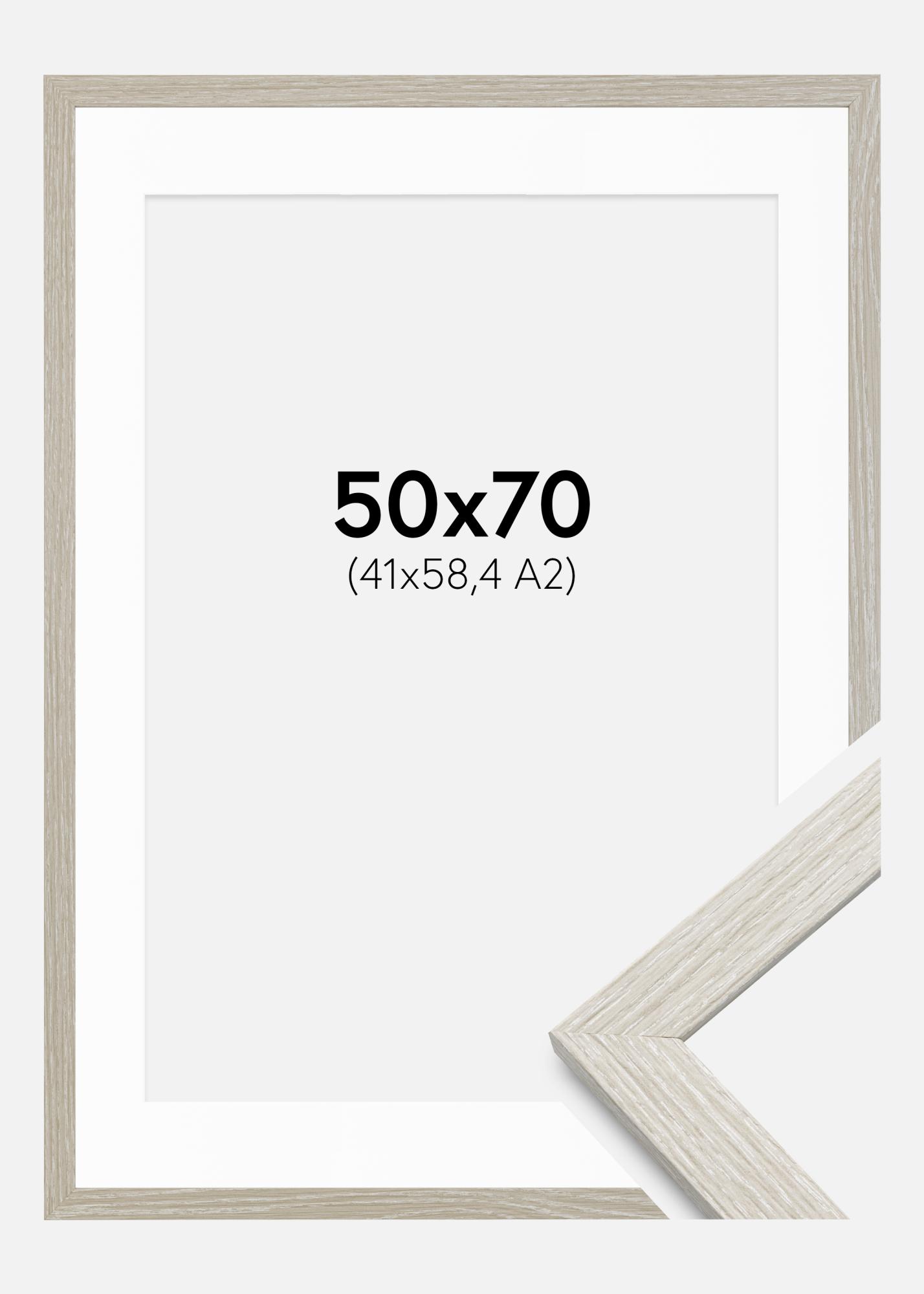 Rahmen Stilren hellgrau Eiche 50x70 cm - Passepartout Weiß 42x59,4 cm