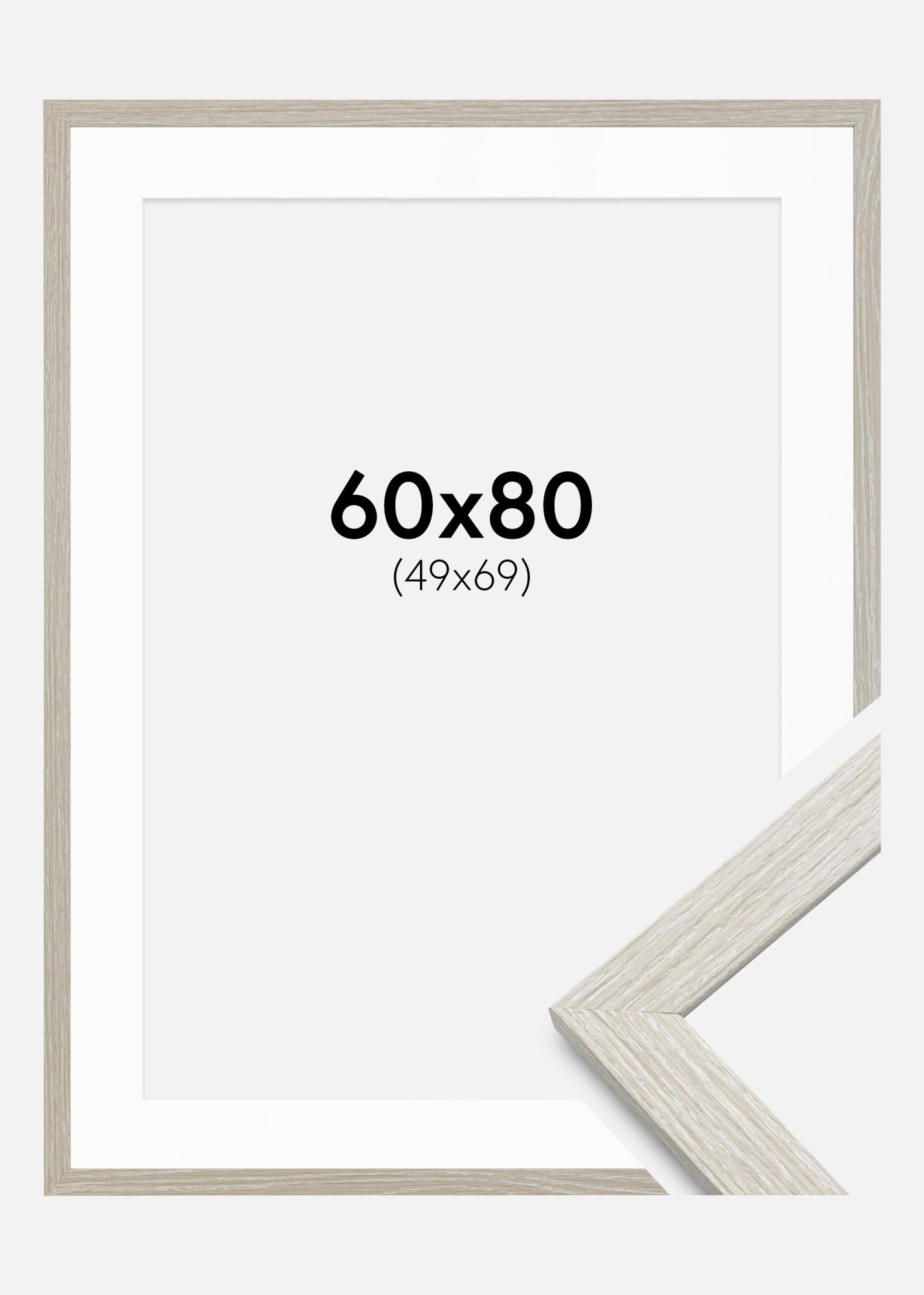 Rahmen Stilren hellgrau Eiche 60x80 cm - Passepartout Weiß 50x70 cm