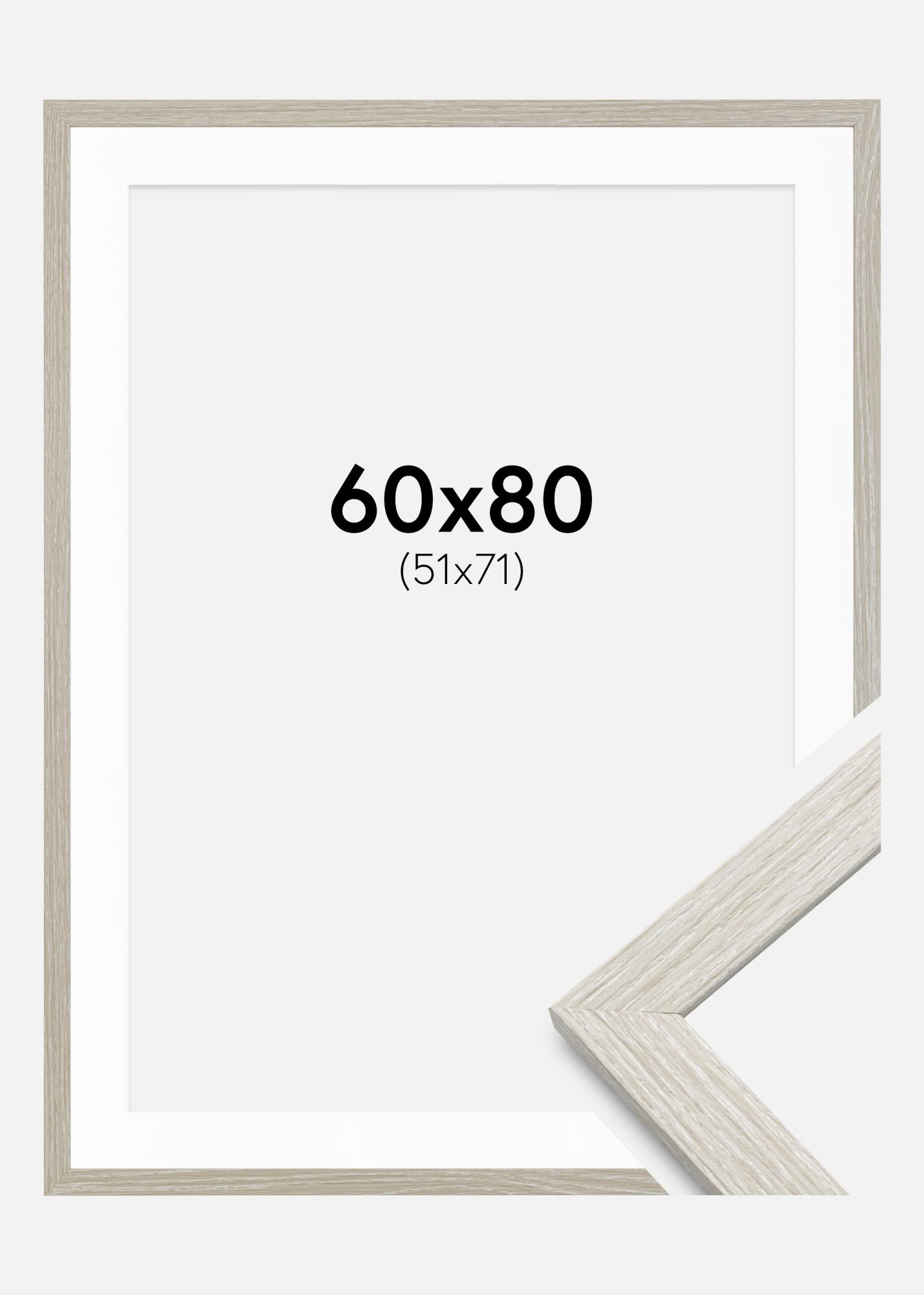 Rahmen Stilren hellgrau Eiche 60x80 cm - Passepartout Weiß 52x72 cm