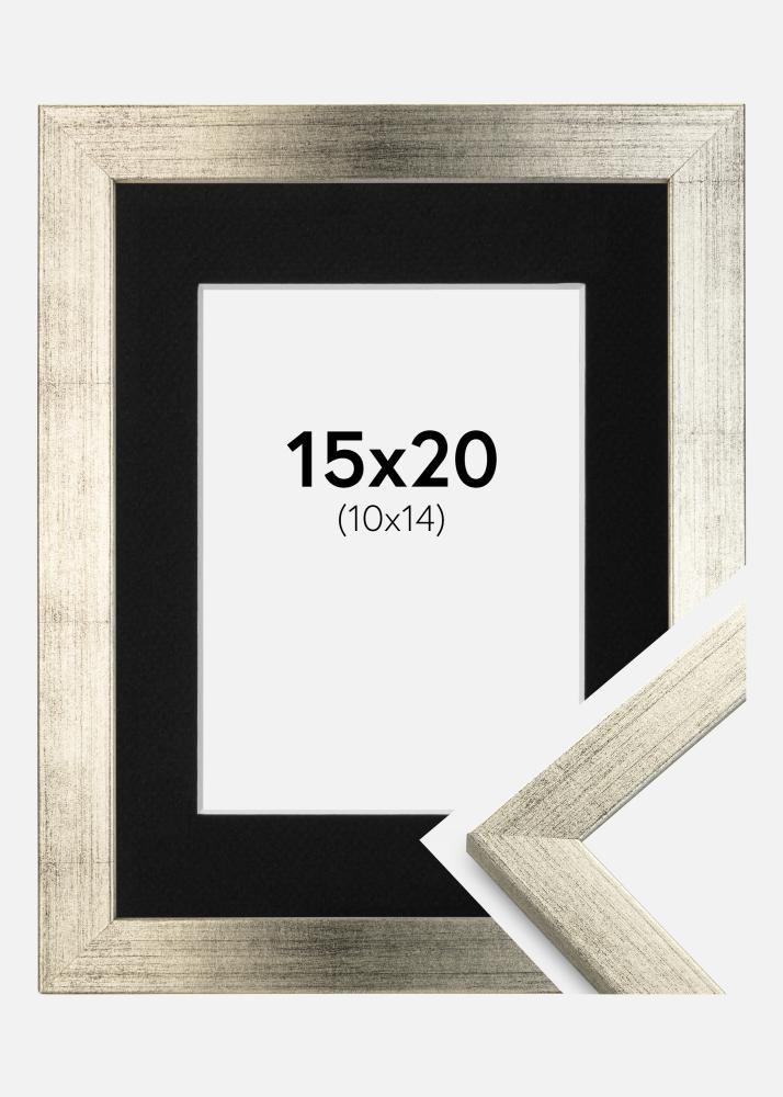 Rahmen Stilren Silber 15x20 cm - Passepartout Schwarz 11x15 cm
