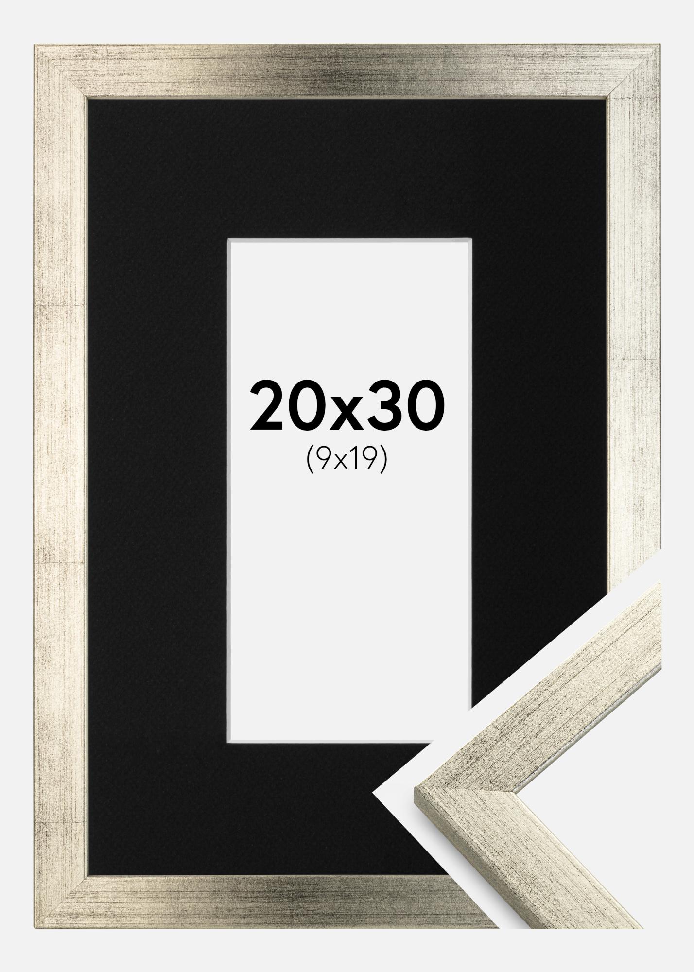 Rahmen Stilren Silber 20x30 cm - Passepartout Schwarz 10x20 cm