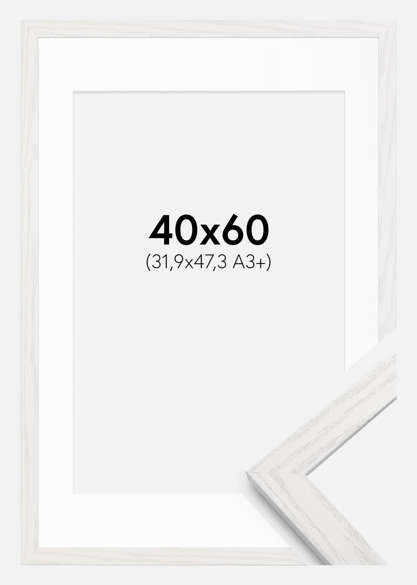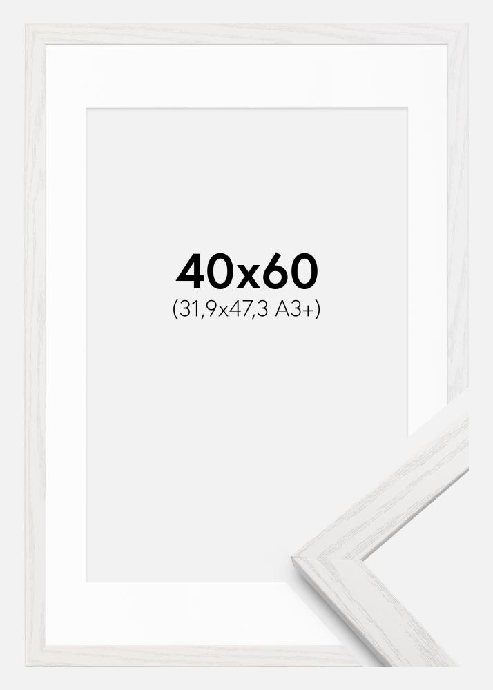 Rahmen Stilren weiße Eiche 40x60 cm - Passepartout Weiß 32,9x48,3 cm