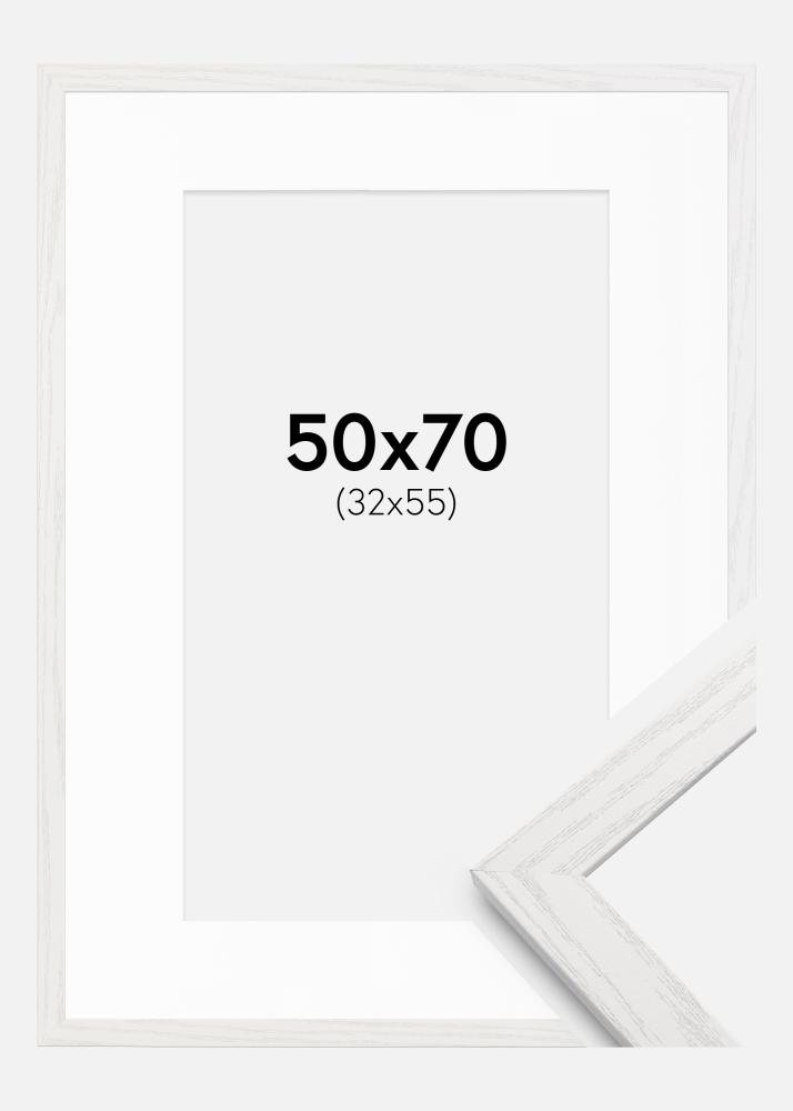 Rahmen Stilren weiße Eiche 50x70 cm - Passepartout Weiß 33x56 cm