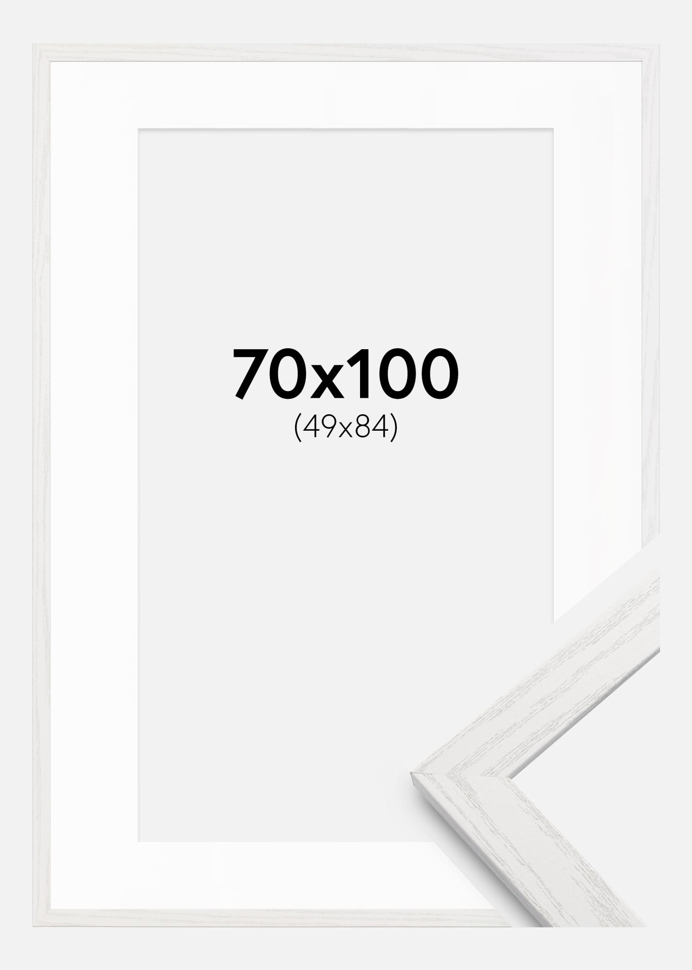 Rahmen Stilren weiße Eiche 70x100 cm - Passepartout Weiß 50x85 cm