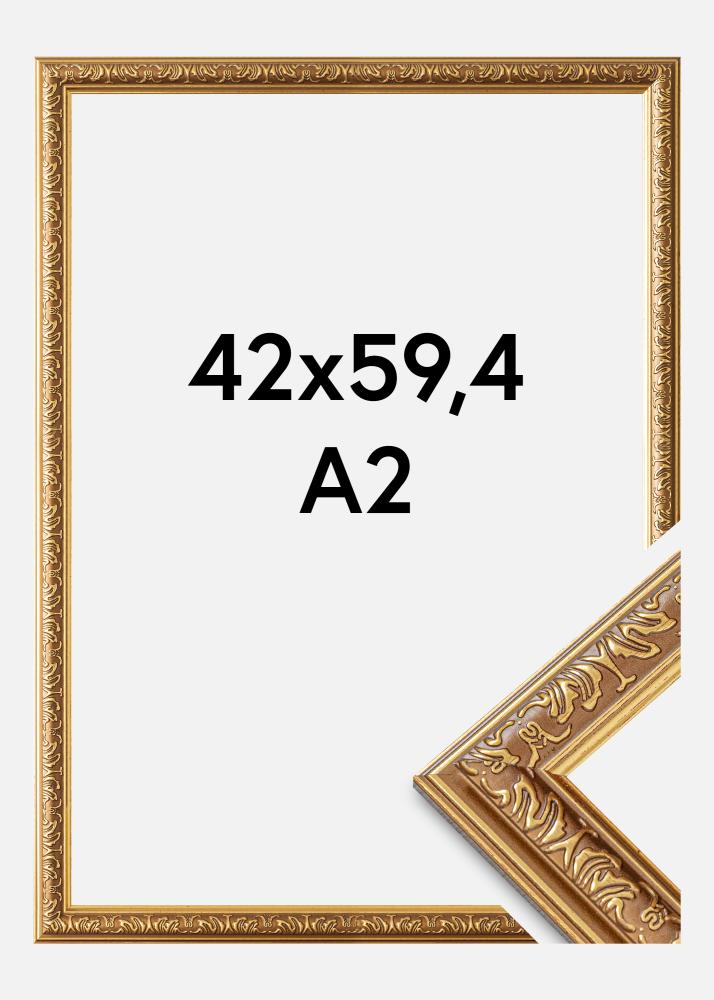 Verleihen Sie Ihren Wänden mit einem Bilderrahmen, der Eleganz und Klasse ausstrahlt, das gewisse Etwas. Dieser goldene Fotorahmen ist so gestaltet, dass er Motive in der Größe 42x59,4 cm (A2) aufnimmt, und ist somit ideal, um Ihre Lieblingskunstwerke oder Fotografien zur Geltung zu bringen. Mit einer Rahmenleiste, die 28 mm breit und 20 mm tief ist, bietet dieser Rahmen eine robuste und stilvolle Einrahmung.