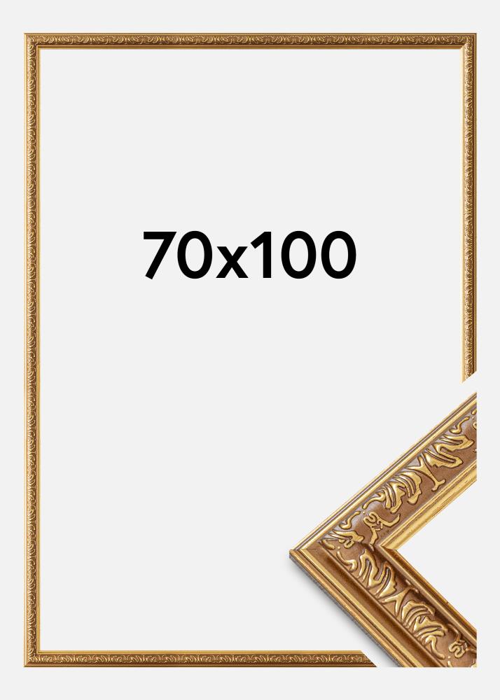 Dieser Bilderrahmen in der Größe 70x100 cm ist eine perfekte Kombination aus klassischem Design und moderner Funktionalität. Mit seiner luxuriösen Goldoberfläche und dekorativen, verzierten Details verleiht er Ihren Kunstwerken oder Fotografien eine anspruchsvolle Note. Die aufwendigen Muster entlang der Innenkante des Rahmens erzeugen ein traditionelles und zeitloses Gefühl, wodurch er ideal für sowohl klassische als auch elegante Einrichtungsstile geeignet ist.