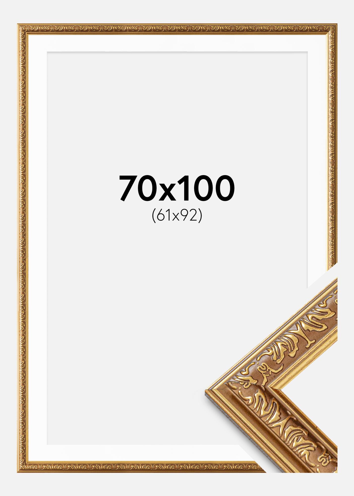 Verwandeln Sie Ihre Erinnerungen in Kunstwerke mit unserem eleganten goldfarbenen Rahmen, komplett mit einem stilvollen weißen Passepartout. Dieser Rahmen ist perfekt, um Bilder der Größe 62x93 cm hervorzuheben, und sein luxuriöser Goldton verleiht jedem Raum eine anspruchsvolle Note.