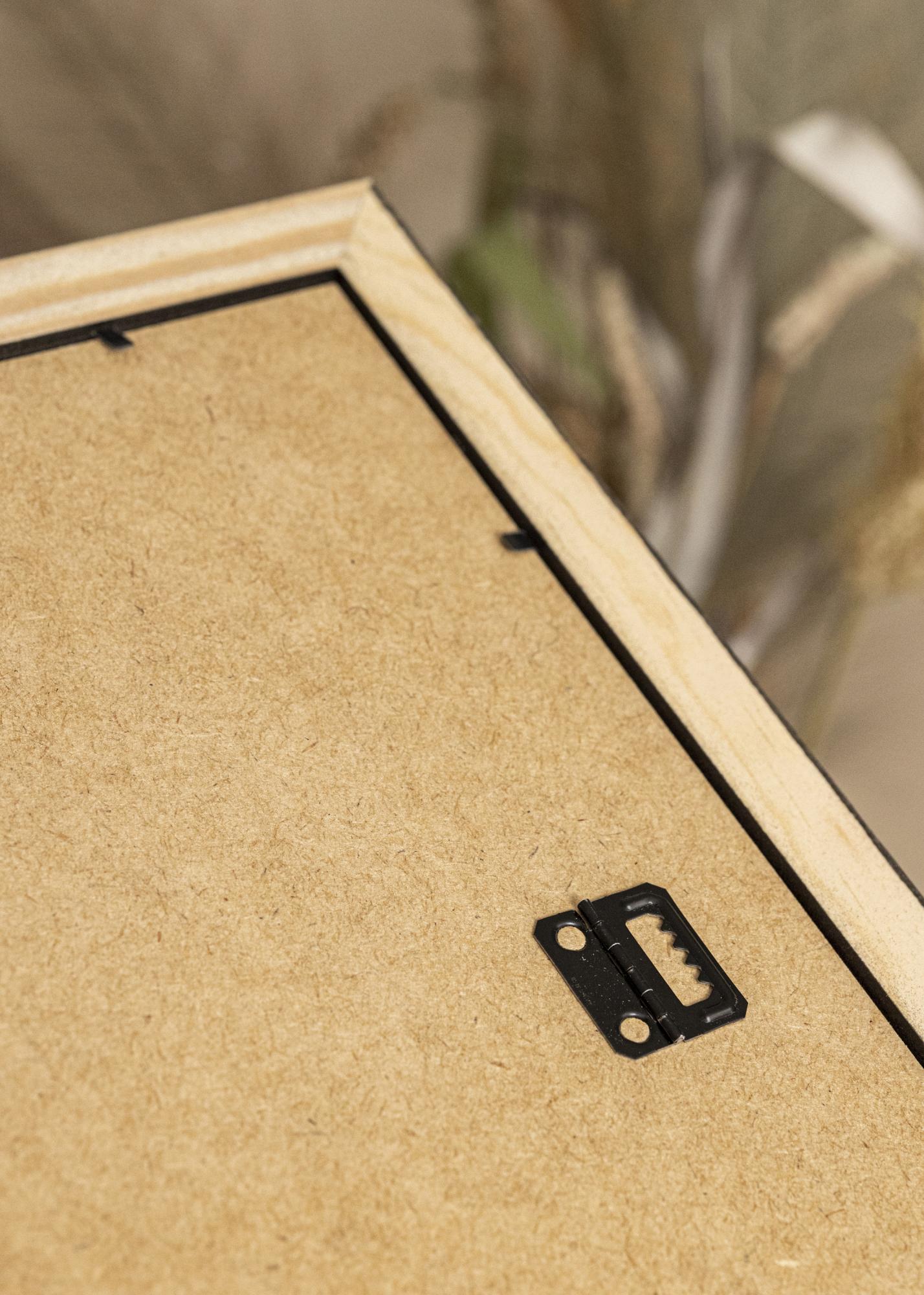 Dieser massive Holzrahmen ist mit Acrylglas ausgestattet, das sich im Unterschied zu echtem Glas durch das geringere Gewicht und die Widerstandsfähigkeit auszeichnet. Die Rückwand ist mit Wandhalterungen für die Aufhängung im Quer- als auch im Hochformat versehen. Befestigt ist die Rückwand mit kleinen, biegbaren Metallstiften, die einfach nach oben gebogen werden können, um das Bild einzulegen.