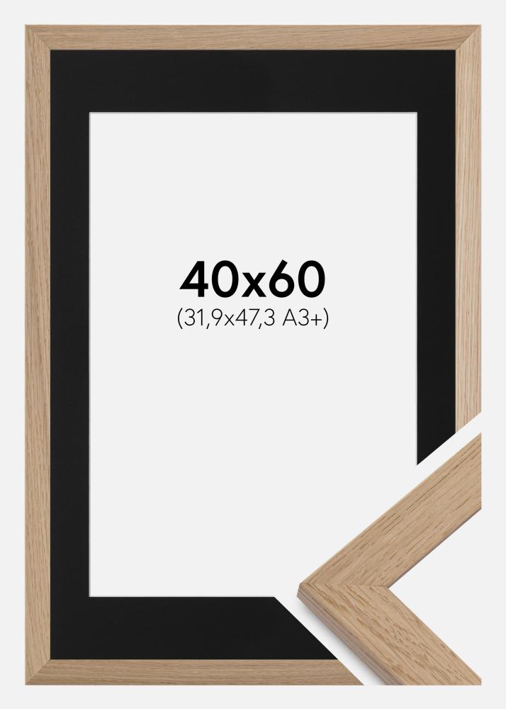 Rahmen Trendline Eiche 40x60 cm - Passepartout Schwarz 32,9x48,3 cm (A3+)