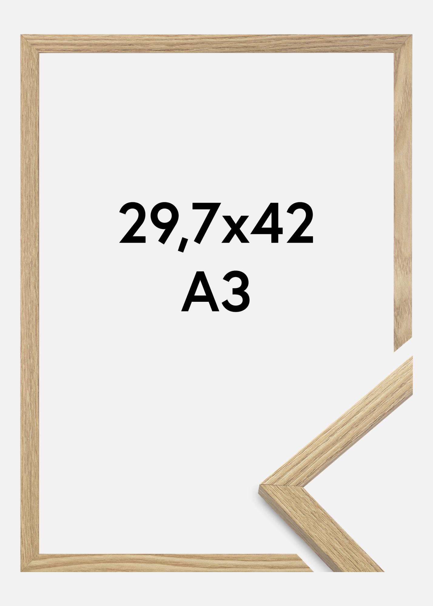 Ein klassischer Bilderrahmen in Eiche-Optik mit schmaler Leiste, der jedes Motiv stilsicher einrahmt. Der natürliche Charakter dieses Bilderrahmens stellt das Bild in den Fokus, ohne sich selbst in den Vordergrund zu drängen. Ein Bilderrahmen, der insbesondere Naturmotive schön zur Geltung bringt, aber auch in Kombination mit modernen Motiven einen ansprechenden Kontrast schafft. Der Bilderrahmen kann selbstverständlich hochkant als auch im Querformat verwendet werden.Ein Rahmen, der für Bilder im DIN A3-Format geeignet ist, präsentiert Ihr Bild auf elegante Weise und betont seine Schönheit an der Wand.