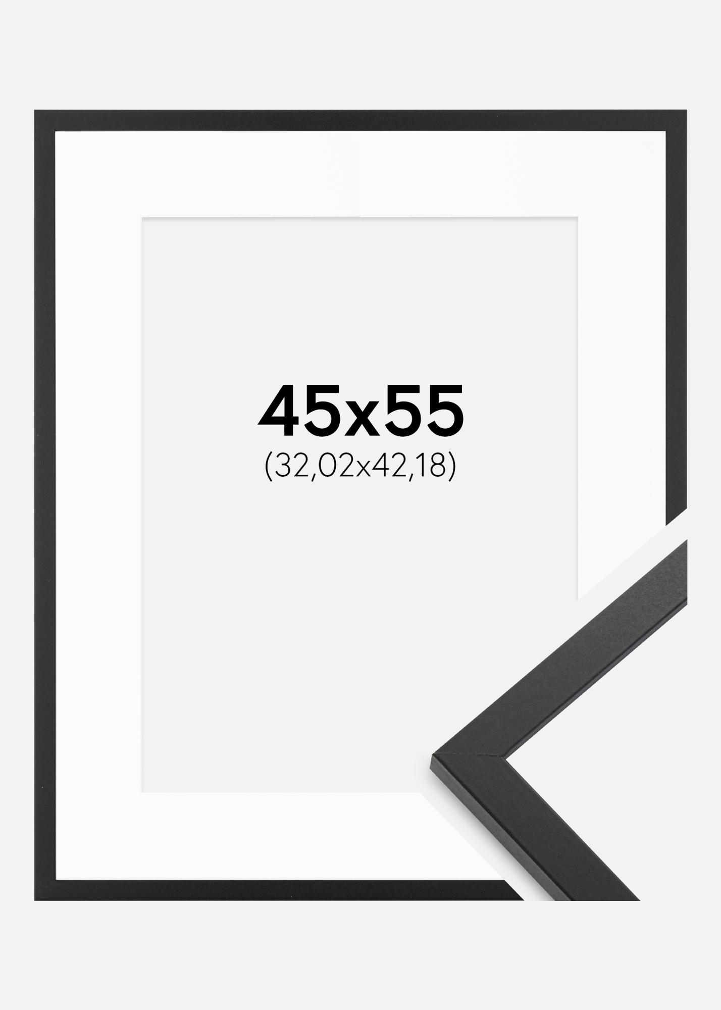 Rahmen Trendy Schwarz 45x55 cm - Passepartout Weiß 13x17 inches