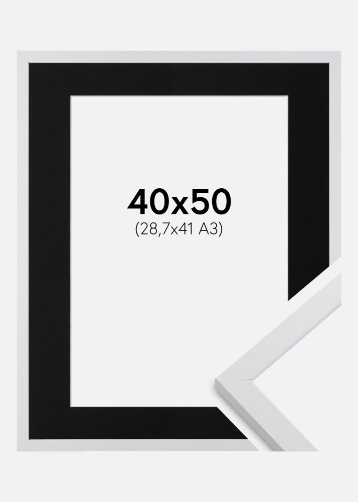 Rahmen Trendy Weiß 40x50 cm - Passepartout Schwarz 29,7x42 cm (A3)