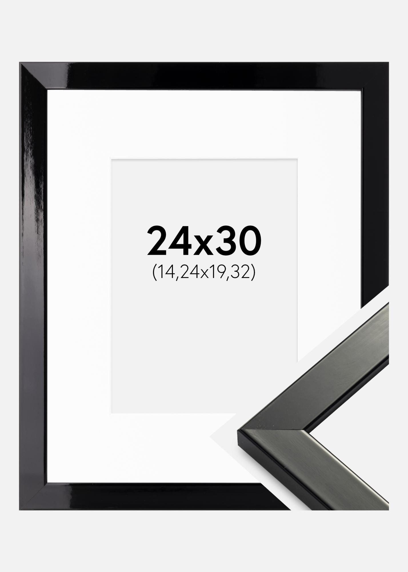Rahmen Uppsala Schwarz Hochglänzend 24x30 cm - Passepartout Weiß 6x8 inches