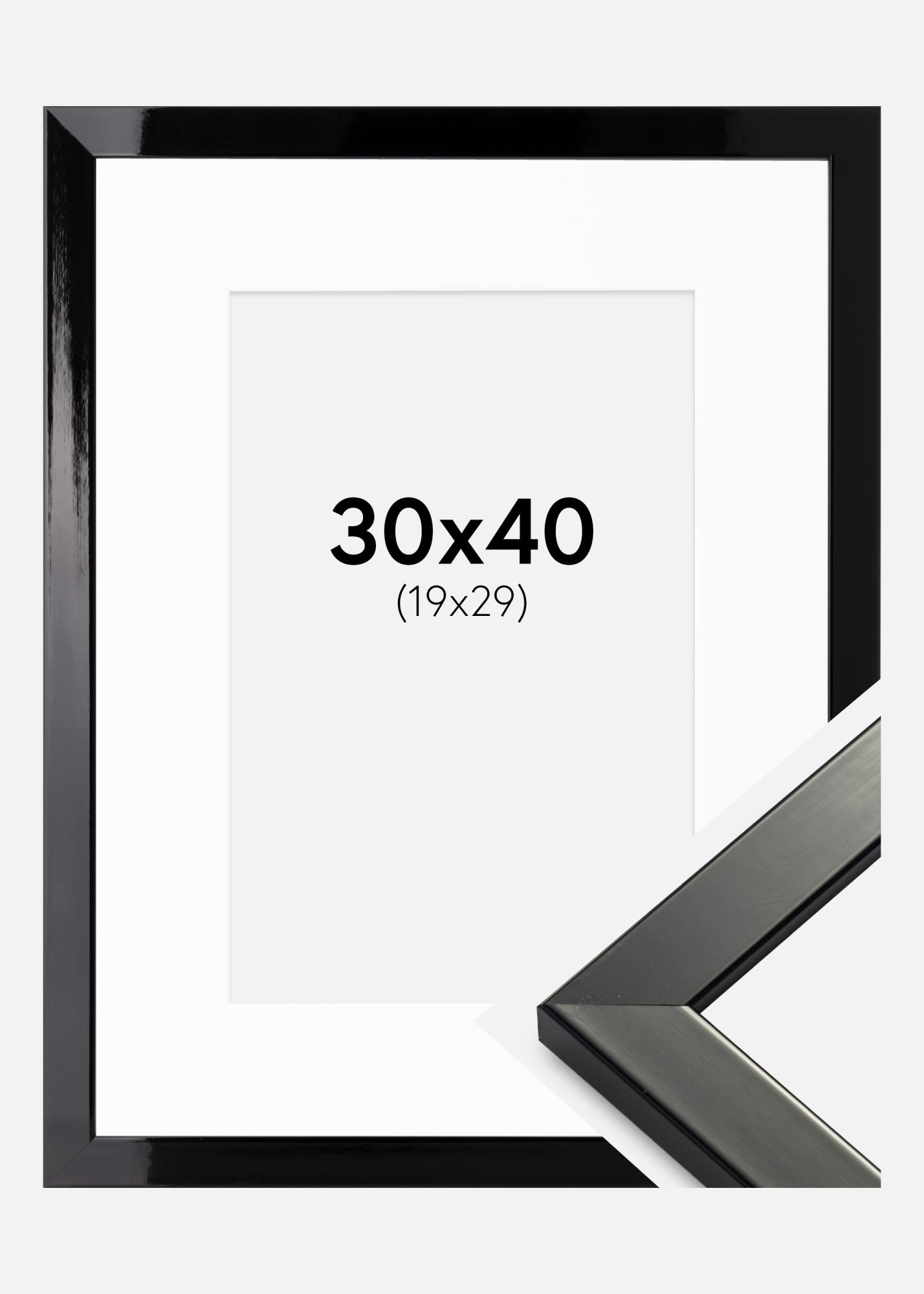 Rahmen Uppsala Schwarz Hochglänzend 30x40 cm - Passepartout Weiß 20x30 cm