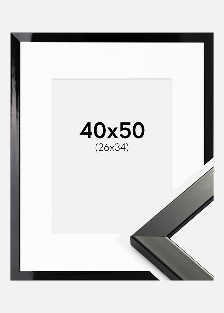 Rahmen Uppsala Schwarz Hochglänzend 40x50 cm - Passepartout Weiß 27x35 cm