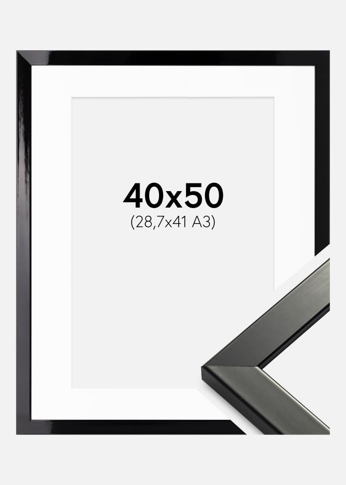 Rahmen Uppsala Schwarz Hochglänzend 40x50 cm - Passepartout Weiß 29,7x42 cm (A3)