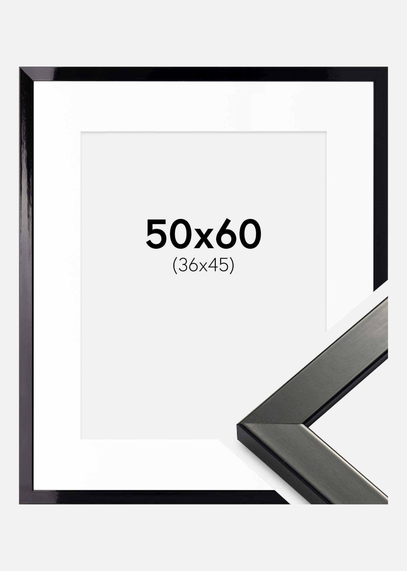 Rahmen Uppsala Schwarz Hochglänzend 50x60 cm - Passepartout Weiß 37x46 cm