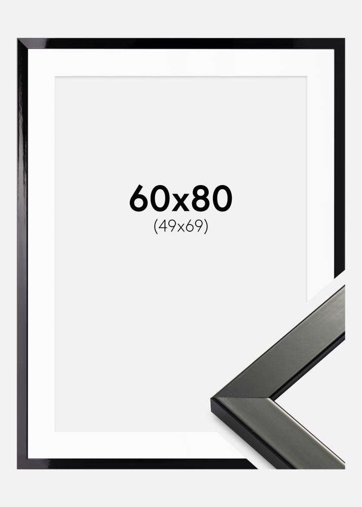 Rahmen Uppsala Schwarz Hochglänzend 60x80 cm - Passepartout Weiß 50x70 cm