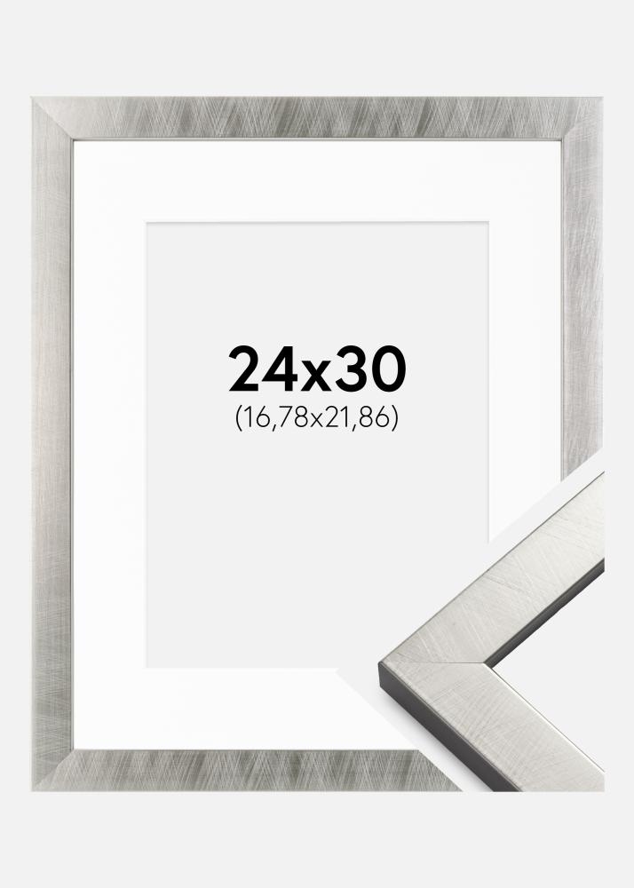 Rahmen Uppsala Silber 24x30 cm - Passepartout Weiß 7x9 inches