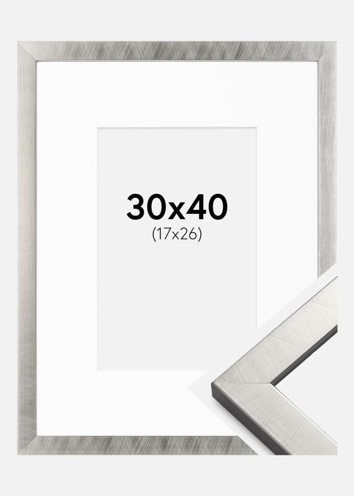 Rahmen Uppsala Silber 30x40 cm - Passepartout Weiß 18x27 cm