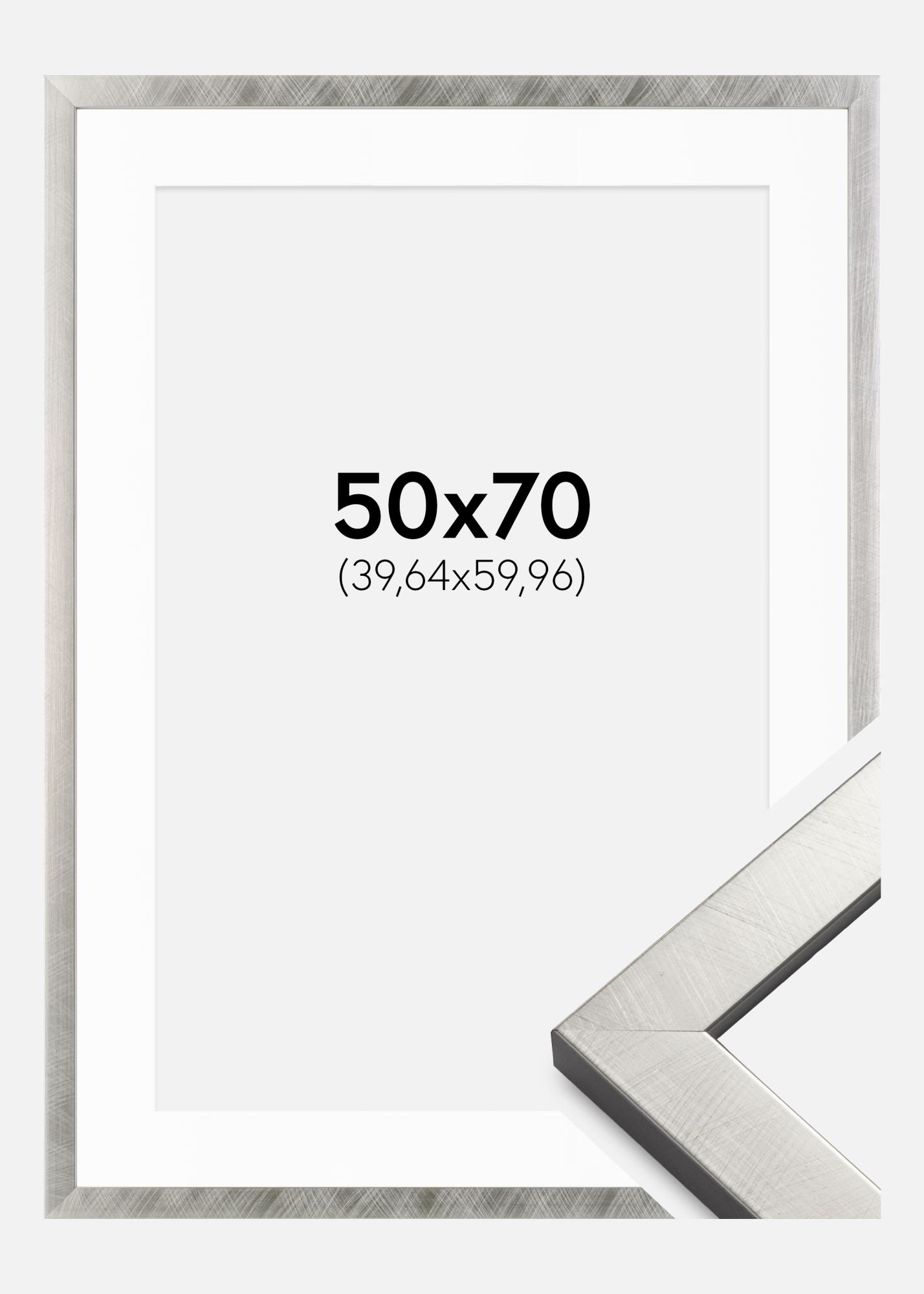Rahmen Uppsala Silber 50x70 cm - Passepartout Weiß 16x24 inches