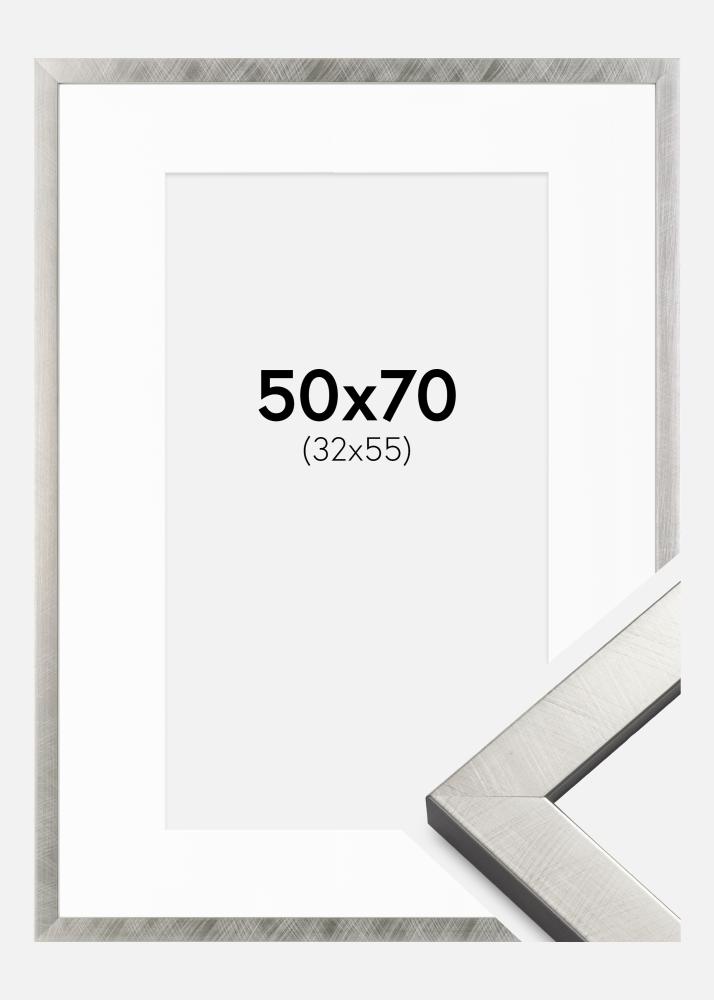 Rahmen Uppsala Silber 50x70 cm - Passepartout Weiß 33x56 cm