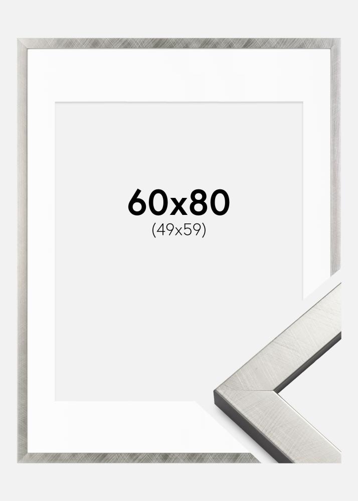 Rahmen Uppsala Silber 60x80 cm - Passepartout Weiß 50x60 cm