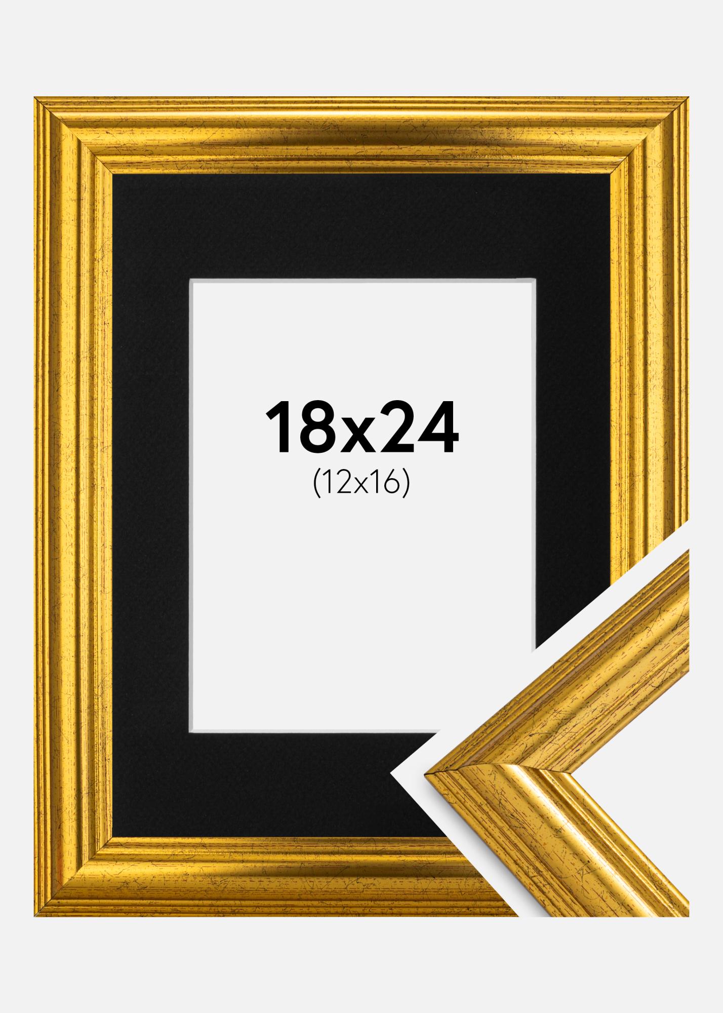 Rahmen Västkusten Gold 18x24 cm - Passepartout Schwarz 13x17 cm