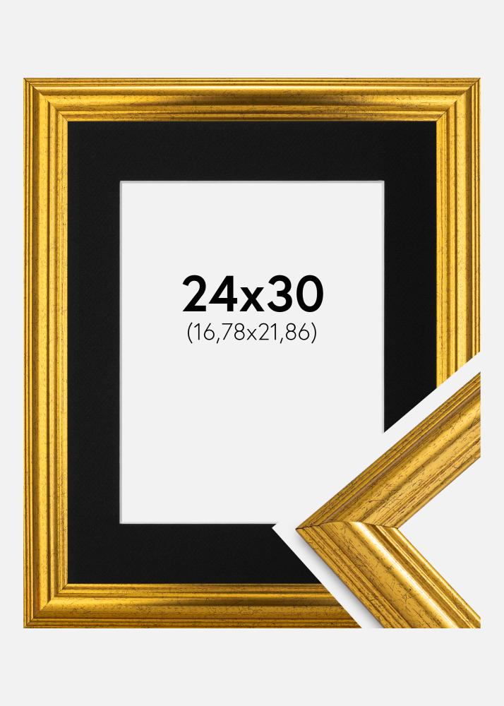 Rahmen Västkusten Gold 24x30 cm - Passepartout Schwarz 7x9 inches
