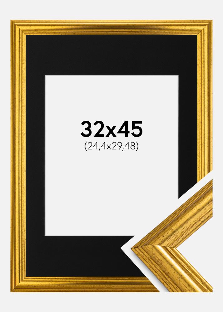 Rahmen Västkusten Gold 32x45 cm - Passepartout Schwarz 10x12 inches