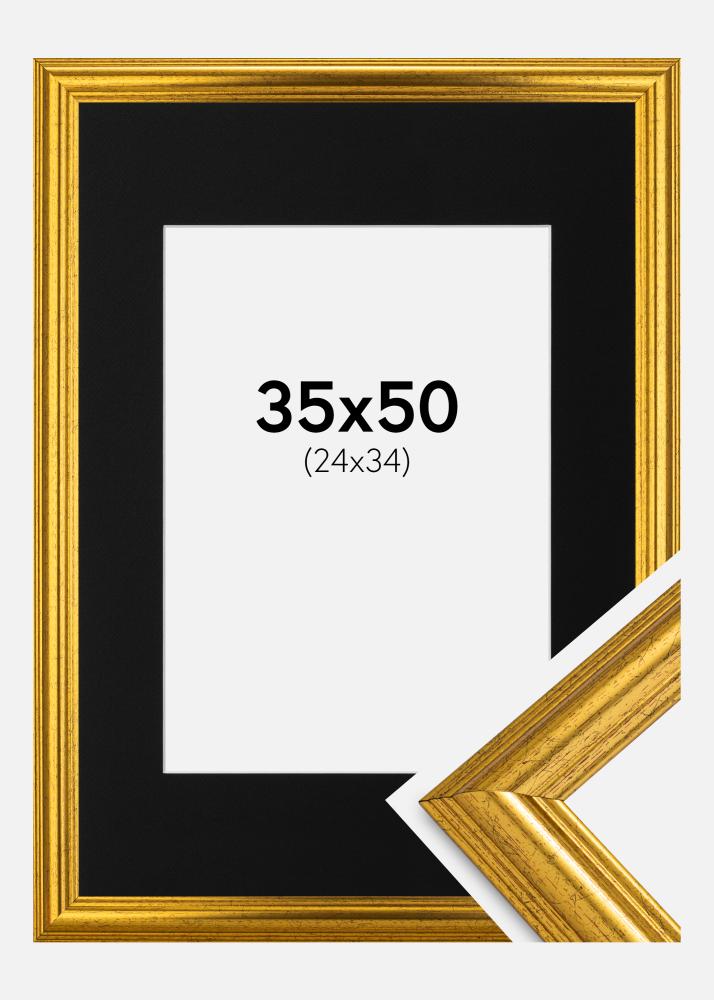 Rahmen Västkusten Gold 35x50 cm - Passepartout Schwarz 25x35 cm