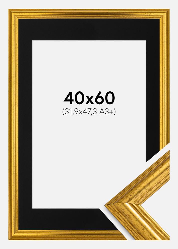 Rahmen Västkusten Gold 40x60 cm - Passepartout Schwarz 32,9x48,3 cm (A3+)
