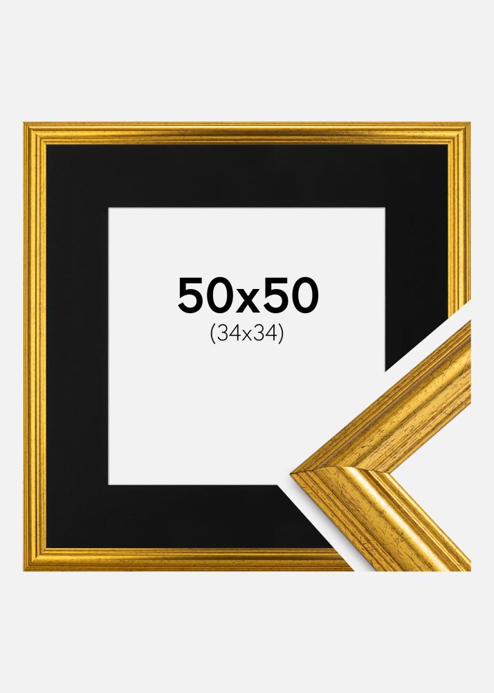 Rahmen Västkusten Gold 50x50 cm - Passepartout Schwarz 35x35 cm