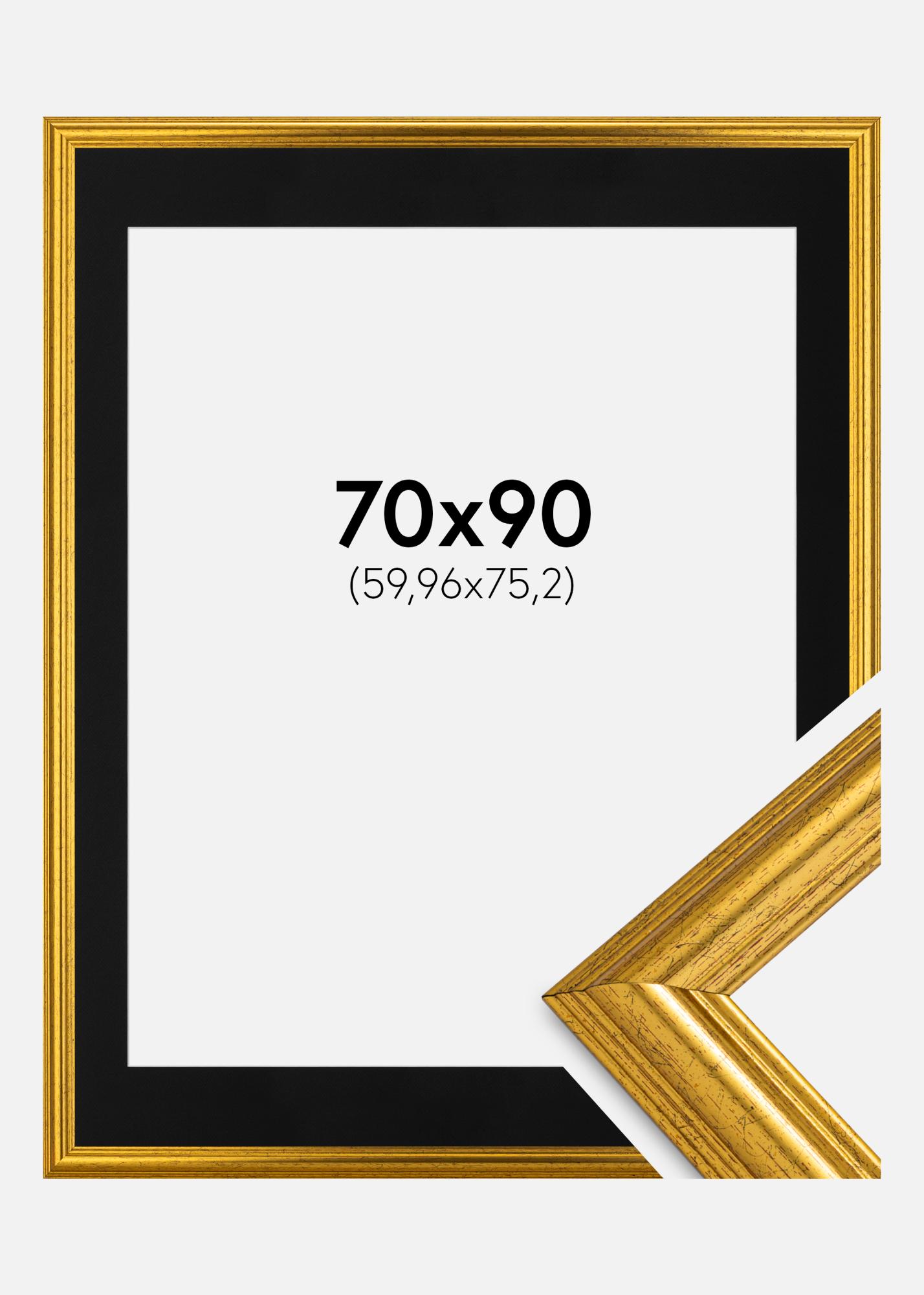 Rahmen Västkusten Gold 70x90 cm - Passepartout Schwarz 24x30 inches