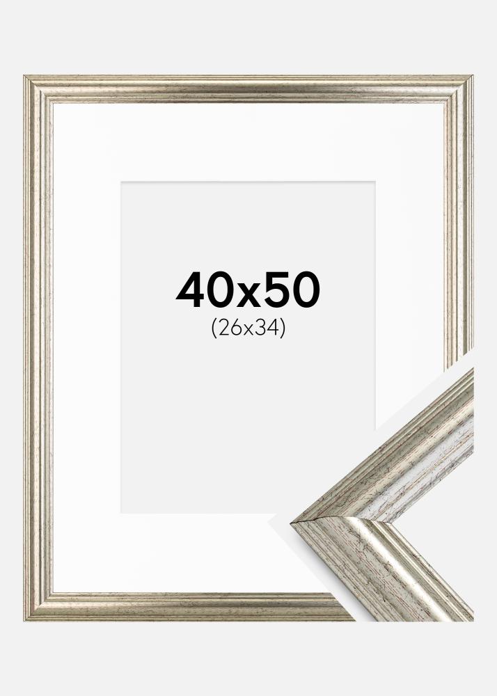 Rahmen Västkusten Silber 40x50 cm - Passepartout Weiß 27x35 cm
