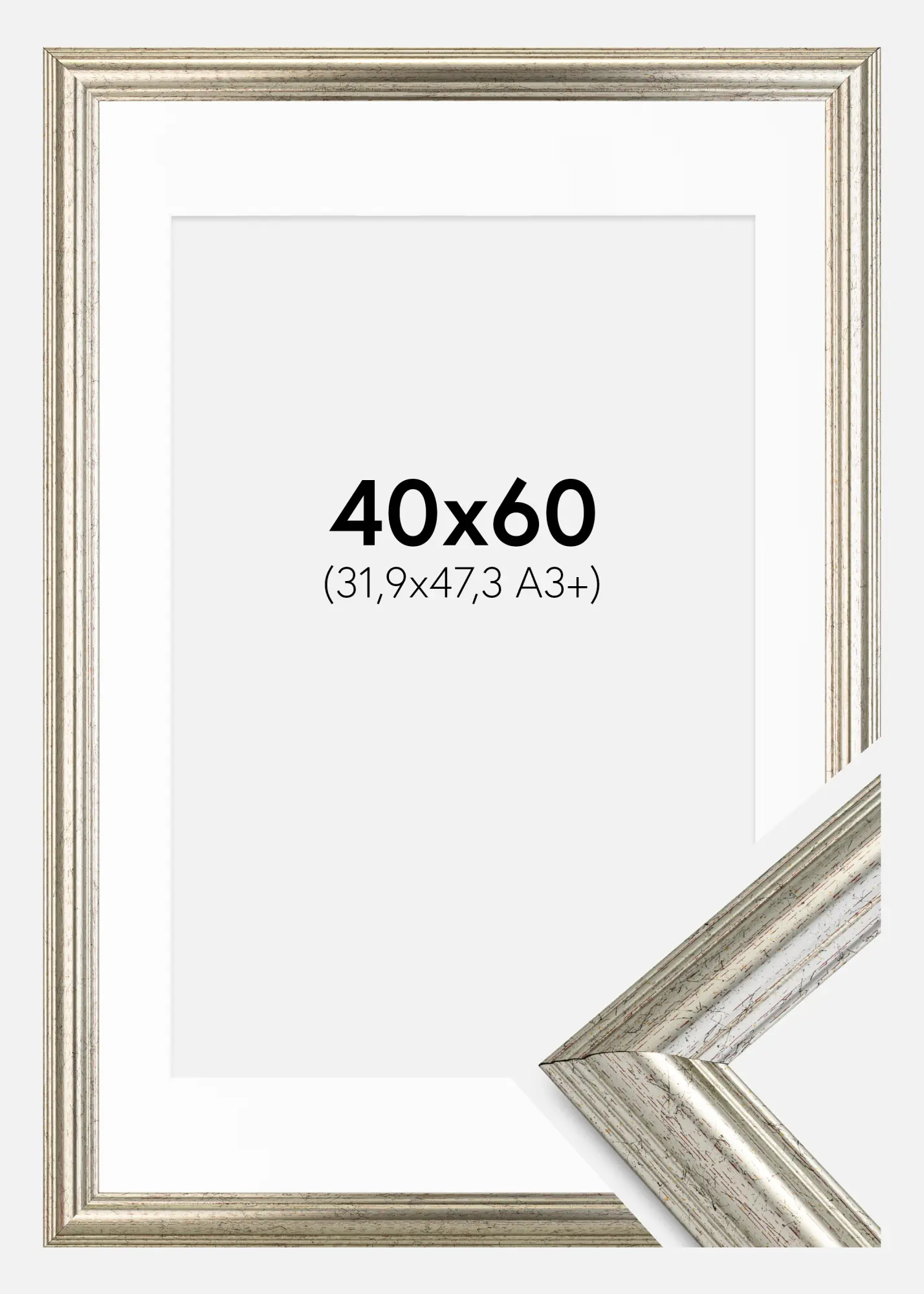 Rahmen Västkusten Silber 40x60 cm - Passepartout Weiß 32,9x48,3 cm (A3+)