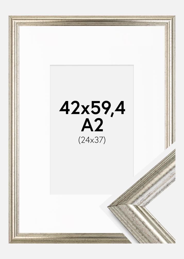 Rahmen Västkusten Silber 42x59,4 cm (A2) - Passepartout Weiß 25x38 cm