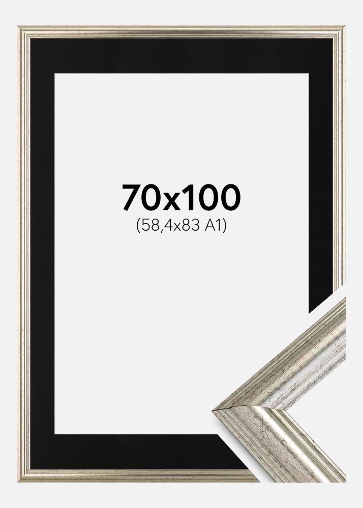 Rahmen Västkusten Silber 70x100 cm - Passepartout Schwarz 59,4x84 cm (A1)
