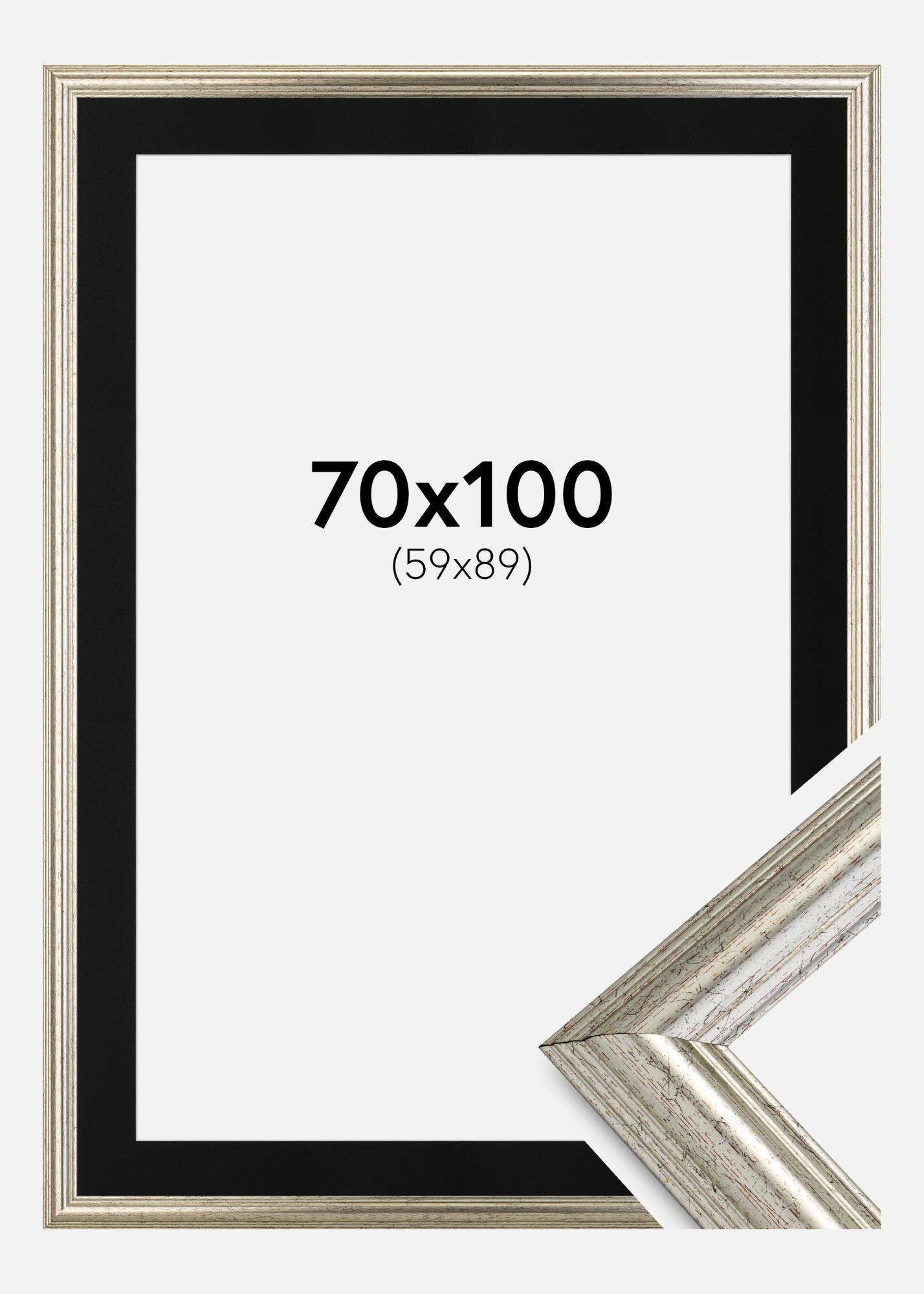 Rahmen Västkusten Silber 70x100 cm - Passepartout Schwarz 60x90 cm