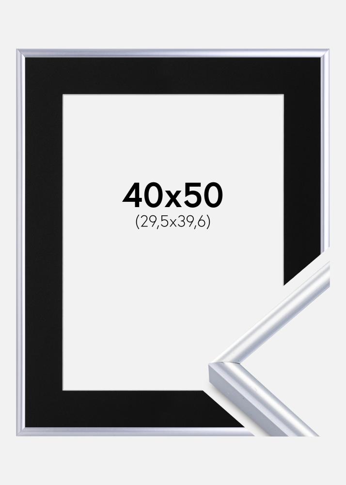 Rahmen Victoria Silber 40x50 cm - Passepartout Schwarz 12x16 inches