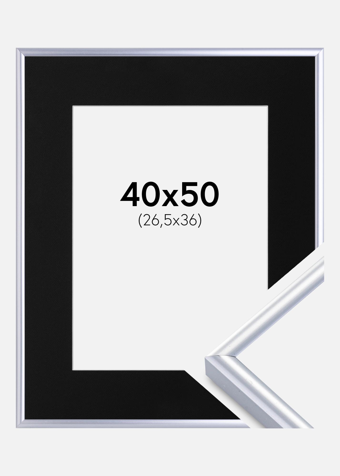 Rahmen Victoria Silber 40x50 cm - Passepartout Schwarz 27,5x37 cm