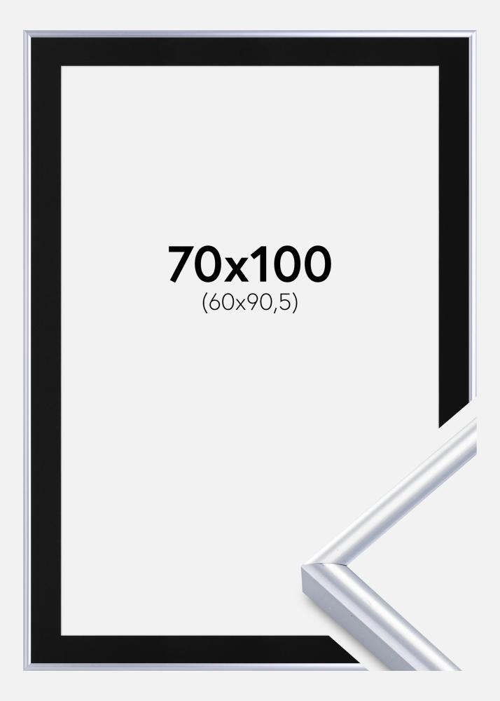 Rahmen Victoria Silber 70x100 cm - Passepartout Schwarz 61x91,5 cm